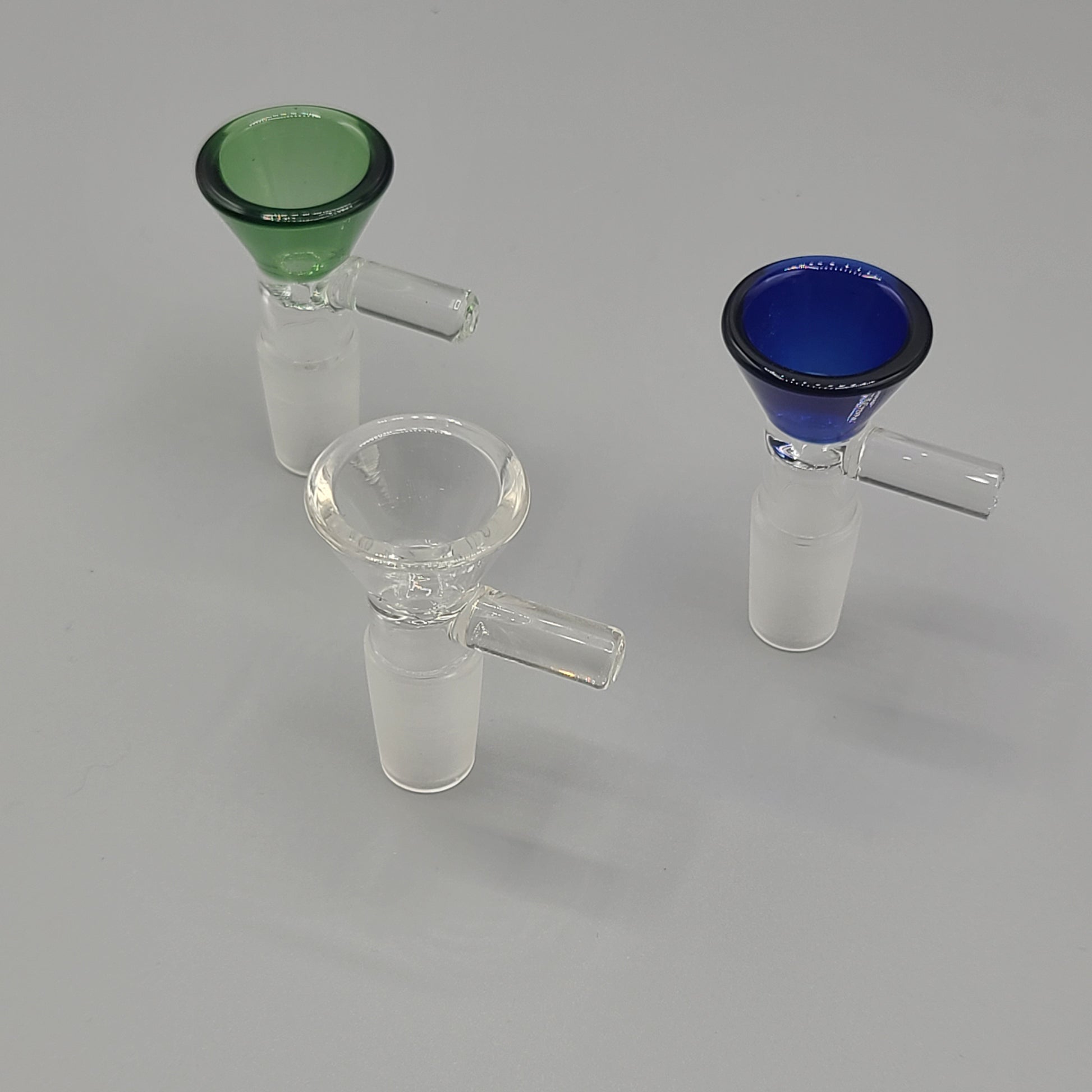 One 14mm Glass Male Bowl in your choice of Blue, Green or Clear.